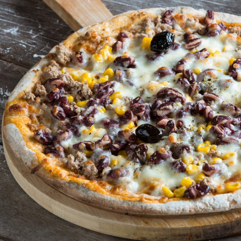 La Pizza Obama marie la générosité de la viande hachée et la douceur des haricots rouges, relevées d’un soupçon d’ail et adoucies par la crème fraîche. Une explosion de saveurs équilibrées, riche et réconfortante.